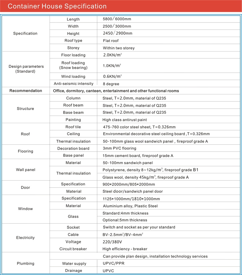 Flat pack container house is the modular construction product, base on steel structure and light weight wall panel structure, which consists of top, base, corner column and 14pcs  interchangeable wall panels, can be flat packing for land and sea transportation easily. This house can be use as office, dormitory, canteen, bathroom and combination of the large space, used on construction sites to meet the worker camps, field operations camps, municipal resettlement housing, the needs of all types of commercial buildings.